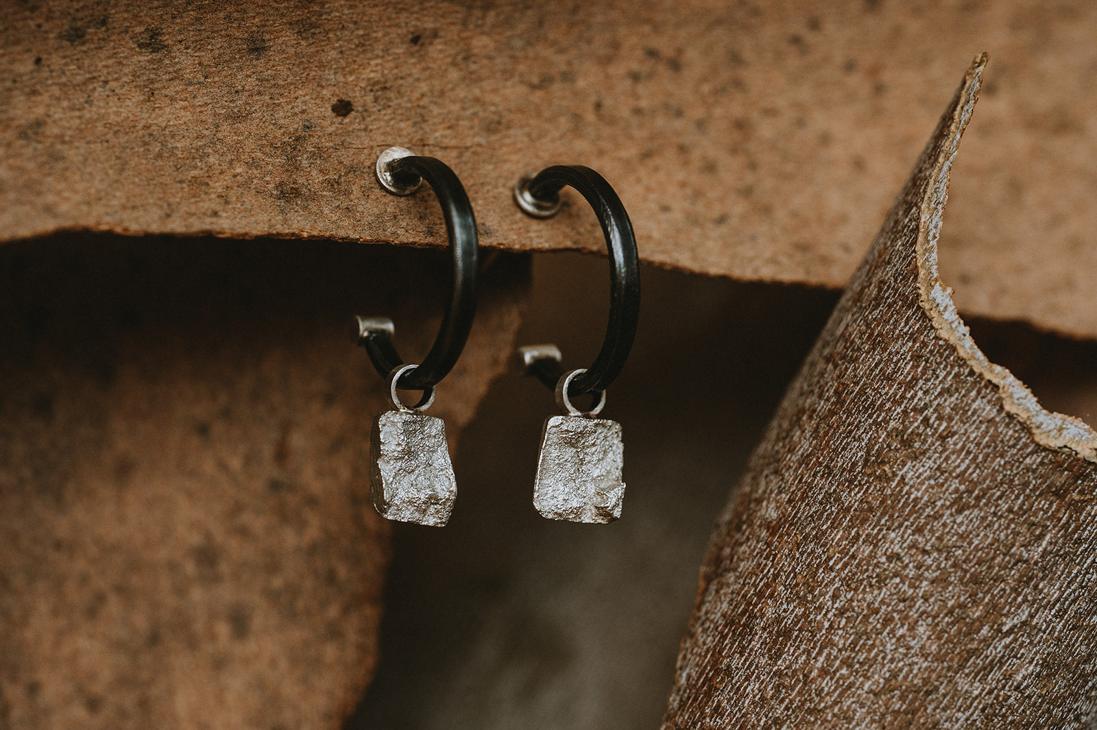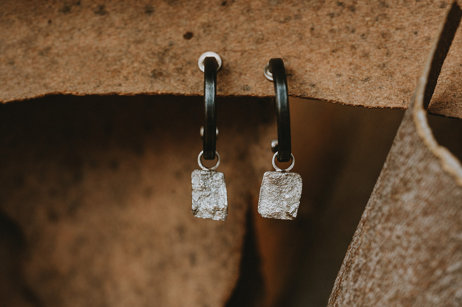 Love a hoop style? Then check out these Broken Hoop Earrings. These blackened steel and sterling silver hoops feature dangles created from Zink Metals' signature broken silver components.